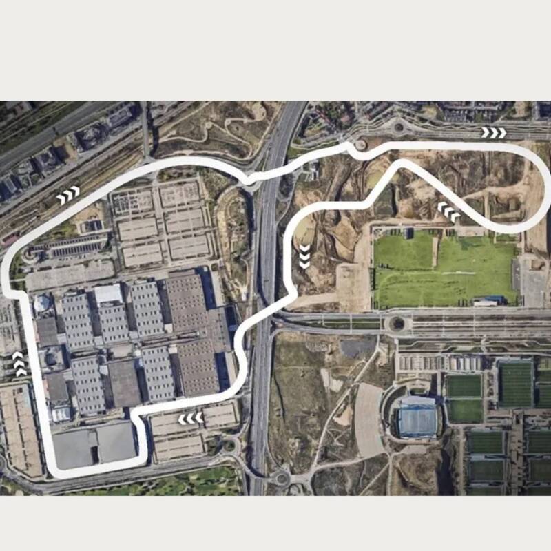 El trazado, denominado oficialmente Madring, tendrá una longitud de 5.470 metros, contará con 22 curvas y un tiempo estimado de vuelta de 1 minuto y 32 segundos. Se trata de un circuito urbano que combinará vías públicas con zonas específicamente adaptadas para la competición.